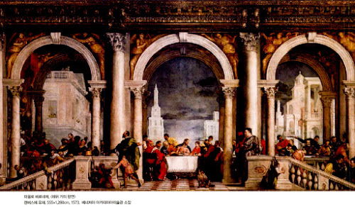 파올로 베로네제는 1573년 베네치아의 도메니코 수도회의 주문으로 최후의 만찬을 주제로 하는 회화 한 점을 제작... 오늘날 베네치아 아카데미아 미술관에 소장... 너비가 약 13m... 그리스도가 앉아 있는 테이블 주변으로 코피를 흘리고 있는 하인, 개와 난쟁이, 앵무새와 광대, 독일 용병 등 성서의 에피소드와는 아무런 연관이 없는 장면들이 나열... 베로네제는 종교재판소에 소환되었다... 가톨릭교회는 작품의 제목을 바꿀 것 그리고 장면의 일부를 수정할 것을 요구했다... 제목은 부유한 세리였던 레위가 예수를 초청하여 만찬을 베풀었던 성서의 에피소드에 착안하여 <레위 가의 향연>으로 변경되었고 화면 중앙에는 난간이 덧붙여 그려졌다. (83-84)